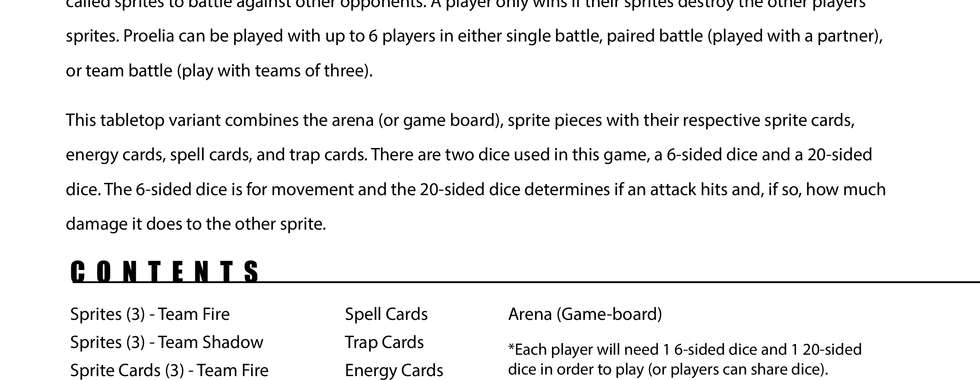 Proelia is a game I invented based off a sport/game of the same name from a fantasy series called Avalon I am currently in the process of writing. In my newest series, Proelia is a popular game played by most of the population, from adults to kids. In my books, players actually conjure elemental sprites and battle each other until the other teams' sprites are eliminated.